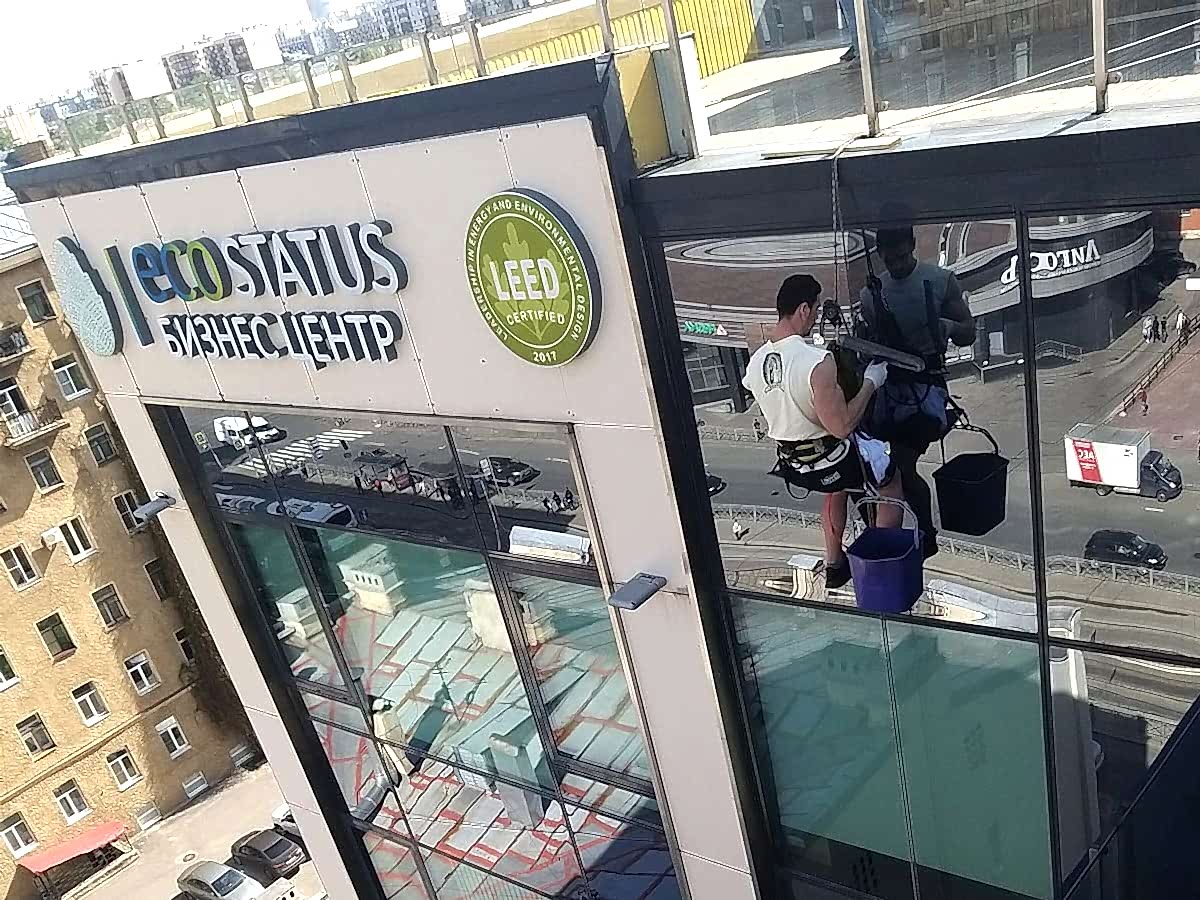 Как помыть окна на высоте?